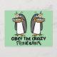 Obey de galna Penguins! - Två galna tecknader penguiner med en rolig lina! Penguiner med ett fånig som anger / citat i grått, vitt, orange och svart färg med en cyan, turkos grönt bakgrund. Helt anpassade.
