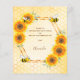 Ett tack för en sommartid Möhippa. Gult och orange: Rustiska vattenfärgade solrosor på en bikaka mönster. Med faux guld geometric ram. Med texten: Tack och Bride to Bee skrivet med ett modernt handskript i stil. Anpassa och lägg till bridens namn. Brown brev. Din tackkort och namn.