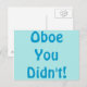 Har du åkt dit verkligen? Oboe du inte! Oboe Du har inte lagt ut kortet på perfekten hälsning för någon märklig oboe-spelare. Utformningen har en ljusblå bakgrund och lyder: "Oboe you not!" i ett blått Hobo-teckensnitt på grund av oboe- och hobo-rym. Ja, det är den sortens kreativ genialitet du har att göra med! Detta vykort är också underbart för alla kort som läser bonobos som du råkar känna till.