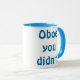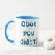 Gick du verkligen där? Oboe gjorde du inte! Denna Oboe som du inte rånade, är den perfekta gåvan för någon snarky oboespelare. Det tvåsidigt, design för blåttringermugg läser, "Oboe som du inte gjorde!", i en blåttHobostilsort, därför att oboe och hoboen rimmar. Yeah är det sorten av idérikt snille som du handlar med! Denna mugg är också underbar för något kaffe som dricker bonobos som du händer att veta.