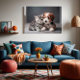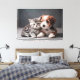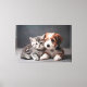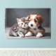 En valp och en kattunge sida vid sida, förenade genom sin blick och ömhet. Denna söta och lugna scen avslöjar kraften i ren och oskyldig vänskap mellan två världar som förenas av tillgivenhet.