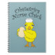 Obstetrics chick i tygla och en gult chick som håller ett ägg är en unik presentdesign för medicinska professioneller i gravid, förlossning och postpartumvård.