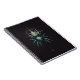 A spiral notebook featuring a detailed dark biomechanical spider design on the cover. The teal and black arachnid has a single golden eye, set against faint sacred geometry, occult symbols, and subtle paint splatters. Perfect for journaling, sketching, or school. An edgy, industrial, and gothic stationery accessory for dark fantasy fans.