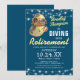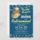 Havsinspirerade inbjudningar till pensioneringsfest med blå bakgrund som kan ändras till valfri färg, en vintage-dykarhjälm, strängljus och en modern festmall som är enkel att anpassa.