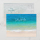 Julvykort med hav och strand. Anpassa till hälsning och namnteckning. Tropiskt blå vatten och strandsand på framsidan med exempeltexten "vi önskar dig" (ändra ordalydelsen till "I" efter behov). Ordalydelsen fortsätter på baksidan med "God jul" och "Gott nytt år" hälsning.