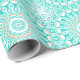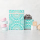 Ocean Blå Turkos Medaljong (Neptunus förtrollning) En elegant och dekorativ bohemisk stil blommande abstrakt mandala design … vacker kalejdoskopisk blommönster i en ocean inspirerad marin färgpalett av vattnig akvamarin med accenter av sandig strand beige på en skarp vit bakgrund.