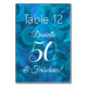 Det här är ett speciellt unikt abstrakt Ocean Blue Art-bordsnummer för födelsedagskalender som är särskilt designat för dina vänner som blir 50 och Fabulous! Anpassa det här bordsnumret till namn. Planera party med mer födelsedagsfest från vår butik! Din vän eller familj kommer att ge kärlek en elegant Ocean Blue födelsedagsfest! Kom ihåg att ändra bordsnumret och beställ var och en separat.