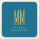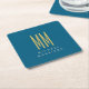 Ocean Blue Guld Monogram Initial Brev Namn Underlägg Papper Kvadrat