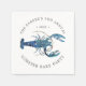Personlig Blue Lobster matade med pappra cocktailservar för nästa Lobster Bake Party eller skaldjursevenemang. Den har en vattenfärgsformaterad illustration av en blå hummer. Omger detta är punkter för din unika händelseinformation.