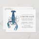 Personlig Blue Lobster inbjudningskorten på vykort för nästa Lobster Bake Party eller skaldjursevenemang. Den har en vattenfärgsformaterad illustration av en blå hummer. Omger detta är punkter för din unika händelseinformation.