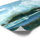 En vattenfärgsmålning av en del av kusten vid Pupukea Beach på Oahu Hawaii, där vågar kraschar mot sten och skapar en hel show.