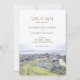 Det här spara-the-date-kortet för elegant har en vacker vattenfärgsillustration av det koniska oceanhuset i Rhode island, där man bortser från det fantastiska New England kusten. I teckningen fångas havsvyns sköna skönhet och den lyxurala resortens klassiska arkitektur, med mjuka nyanser av himmel-blått, sandbeige och lush-grönt som tillägg till kustkarmen. Idealisk för ett romantiskt bröllop i havet, är det här kortet tonen för en oförglömlig händelse fylld med New Englands elegans. Den sofistikerade typografin i jordartsmetaller kompletterar den känsliga vattenfärgen stil, skapar perfekten för par att planera ett destinationsbröllop i oceanhuset eller var som helst längs Rhode island kusten. Det här spara-the-date-kortet erbjuder en förfinad men avslappnad estetisk perfekt för firande vid kusten.