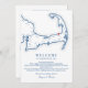 Snabb och enkel beställning! Anpassa välkomst- och färdkorten i Kaptorn bröllop med ditt välkomstmeddelande i bröllop på framsidan och dina helg-händelser på baksidan. Det här är perfekt att inkludera med välkomstpåsar för destinationsbröllopet. Klicka på Redigera med Design verktyg om du vill flytta hjärtat, som visas här i Brewster, MORSA över Ocean Kant Resort. Konstruktion av Coastal Karta-formgivning.