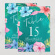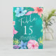 Bordsnummer i blåteal med en färgstark hawaiian stil hibiscus-krans och ett vitt typografiskt skript. Val av perfekt för en modern sommarstrand, havsbottnen, oceanfront, kust, tropisk strand, nautisk strand eller bestämmelseort utanför bröllop.