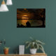 Med en utandningsluft som ser på en Enchanting Island Oasis With Majestic Ocean View.Du kan se silhuetten hos vissa människor runt en brand och havets reflektion över den vackra orangen sol.detta är ett vackert foto på den här poster