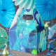 Många-skuggor av blått, grönt, blåviolett och vitt i varierande opacitet läggs ihop för att göra en abstrakt för öga-fångst tryckt.