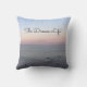Havsoluppgång dekorativ kudde. Kan du inte föreställa dig att du är på stranden och ser den här vackra soluppgången? Det är drömlivet! Uttrycket "Dream Life" i ett söt svart teckensnitt över en bild av en rosa soluppgång som kommer till liv över stranden och en livräddarshack i vackra Panama City, Florida.