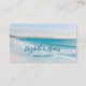 Vackert havsfoto i turkos och blått, AI skapat. Affärskortet har en aning minimalism. Med ett handskript för elegant. Perfekt för resor, bäcksverkstäder, strandhotell, skönhet, salon, spa och massage, strandbutik och alla havsrelaterade företag.