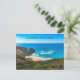 Vykort med målning av en strand i Algarve, ett populärt turistmål i Portugal, och dess vackra turkoshav vatten.