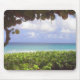 Det ursprungliga fotot av ZoeSPEAK på den här musslan är en bild av Atlanten från sanddyner ovanför Juno-stranden i Florida. I förgrunden längst upp i sanddynorna finns en rad havsdruvor med skivliknande löv för gult grönt. Himmel är blått med puffa vita moln över havs- och akvblått hav.