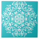 Denna vitmandala sitter på en turkosbakgrund. Färgerna är lugna mycket och fridsamma. Del av den Pras Mandalasamlingen.
