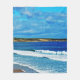 Bild är en lång syn på en vackraste strand där vågar bryter ned bara strandlinjen och backe i avstånd