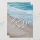 Fira kärlek vid serenstränderna med Kärlek vid havet: Elegant Beach Wedding Save Date Card. Framsidan har en delikat och hjärtslitande fras "Spara datumet" i den exekverande hjärtvektorns rotationsgrafi, som symboliserar kärlek som binder dig. Ditt namn och det viktiga datumet visas elegant i vitt, vilket gör att du kan trycka på de här inbjudningarna. Baksidan fortsätter magin med anpassningsbar som sparar datumangivelsen mot bakgrund av kusten under det tydliga blå himmel.