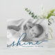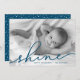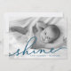 semesterhälsningar med chicen Hanukkah-fotokort som innehåller ditt favoritutfallsorienterade vågrät eller landskapsinriktat foto. "Shine" visas som en havsblå textövertäckning i elegantens handskrivna skripttypografi. Anpassa med namn och året längs grund. Kort återgår till matchande mörk blått med ett snötäcke.