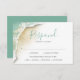 Den här vita och turkos-grönten är designad för att samordna med min uppsättning av havssköldpaddsstrasbröllop, med vattenfärgsskstrupe, och innehåller din svarsinformation i en minimalistisk handskriven manustypografi med en sidlängd av min vattenfärg oceanen vinkar och sand. Det finns utrymme för gästerna att lägga till sin osa och enkla alternativ för måltider. Kortet återgår till en kompletterande grönt färg. Om du vill se Victoria Grigaliunas av Do Berätta A Belle besöka www.zazzle.com/dotellabelle