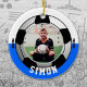Fira ditt barns idrottsliga triumfer i ungdomsförbund, högskola eller högskolefotboll med det här fotbollsblåvita laget Färg Ornament. Anpassa med ditt barns foto, namn och året. En underbar presentidé för mormor och morfar.