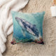 A oceanic themed pillow with a beautiful illustration of an impasto style whale swimming deep in the sea by vibrant colorful coral. A really beautiful coastal art. Colors used are teal, blue and soft coastal colors.