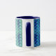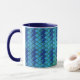 This is a Habatour Creations coffee mug, decorated with an authentic oceanic geometry abstract digital pattern design.