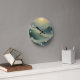 Denna dramatiska konst fångar havets råa kraft och rörelse. Stor, stormig vågar med vapensköldar av vit skumstötar och vält över arbetsytan i en rik palett med djupa blåsor, teals och gröntar. Ovanstående himmel är en virvel av varm gult och mjukt grått, vilket tyder på antingen en stormfylld soluppgång eller ett gyllene ljus som bryter sig igenom molnen. I den painterliska stil kombineras en romantisk realism med en uttrycklig, nästan surrealistisk energi, som fångar havets awe-inspirerande kraft med en drömmande intensitet.