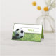 Detta hopkodade fotledda Pub Mitzvah-platskort med inbjudan till Night Stadium Pub Mitzvah. Den har ett band av gräs i grönt längs grund med en svart och vit fotboll med en liten grönt Stjärna av David på den i det nedre, lämnat hörnet på framsidan med en solid grönt på baksidan som också har ett vitt, svart och vitt band som löper tvärs över den med en svart och vit fotboll centrerad på ovansidan av bandet och en vit bokstav under den som säger "Ethan's Pub Mitzvah "på den. Det här fotbolls-ortet har en blandning av grönt och svart text i ett idrottsteckensnitt som matchar inbjudan. Undersidan är grönt.