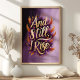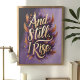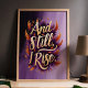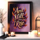 Omfamna din inre styrka med denna fantastiska "Och ändå stiger jag" väggkonst. Med fet guldbokstav som omges av livfulla orange och lila fjädrar, är denna design en hyllning till motståndskraft och empowerment. Perfekt för att tillföra inspiration till ditt hem, kontor eller som en meningsfull present, utstrålar detta konstverk självförtroende och beslutsamhet med sina rika färger och upplyftande budskap.