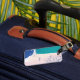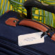 Den här roligten och trendigets bagagemärkning har vattenfärgremsor för rosa och blå abstrakt, med moderna blå accenter och en dekorfärgspunkt för ditt monogram eller initialer på framsidan, samt kontaktinformation på baksidan.