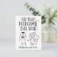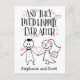 Gratulera någon på deras bröllop eller bröllopsdag med detta unika kort med handstilsbudskap som lyder, "Och de levde lyckligt till slut. Designen inkluderar rolig krita-stil illustration av brud och brudgum med brudbukett, blommor och hjärtan på vit bakgrund. Utrymme nedan för deras brud och brudgum namn eller eget personligt meddelande.