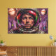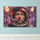 Denna digitala konst av Otis Porritt presenterar en slående närbild av en astronauthelm. Hans ansikte, framställt med uttrycksfulla, måleriska penseldrag i varma hudtoner och djupblått för hennes ögon, blickar uppåt med en känsla av förundran. Hjälmens visir speglar en levande blå himmel, som speglar den vidsträckta, penseldragstexturerade himlen ovanför ett öde, sandigt landskap. Den impastoliknande tekniken, som är karakteristisk för digital konst som härmar traditionellt måleri, ger verket en dynamisk och taktil kvalitet, som betonar kontrasten mellan den detaljerade figuren och den stora, okända miljön.