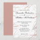 En bröllopsinbjudan till contemporaryn i ro och ve grått, med ornatblommor och snurrar i ro rosa och grått på framsidan, och solid ro rosa på motsatt sida. Alla detaljer kan lätt användas för personlig till kostym.