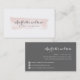 Elegantens affärskort och grått-fullt har ditt namn eller ditt företag namn på en rosa-vattenfärgsbakgrund med kontaktuppgifter på baksidan i vitt på grått.