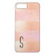Söt iPhone 7 Plus fodral, med vattenfärgsfärgat mönster i rosa och guld. Anpassa det enda svarta brev monogrammet, för dig själv eller som en underbar gåva till henne.