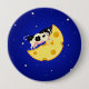 En mjölkko hoppar över en ost måne i himlar och stjärnor på natten.