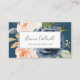 Detta och marinblå affärskort är perfekt för en småföretagare, konsult, stilist och mycket mer! Den klassiska och elegant designen har en modern vattenfärgsblåa och rosa blommor i en tealblått bakgrund.