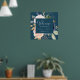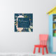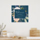 Denna och marinblå välkomna bröllop poster är perfekt för en blommigt bröllop. Den klassiska och elegant designen har en modern vattenfärgsblåa och rosa blommor i en tealblått bakgrund. Anpassa poster till namn på bruden och trimmen och datumet för bröllop.