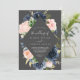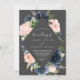 Den och marinerade blomman grått i en bröllopsinbjudan är perfekt för en blommigt bröllop. Den klassiska och elegant designen har moderna vattenfärgsblommor av marinblått och rosa på mörkens grått-bakgrund. Spara papper genom att inkludera uppgifterna på baksidan av bröllopsinbjudan i stället för på ett separat djurutrymmeskort. Ta även med OSA-informationen om din gäst svarar elektroniskt (valfritt).