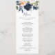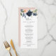 Detta och marinerade menykort för blommor, vita bröllop, är perfekt för en blommigt bröllop. Den klassiska och elegant designen har moderna vattenfärgsblommor i marinblått och rosa. Den här menyn kan användas för bröllopsmottagning, repetitionsmiddag eller vad som helst.
