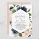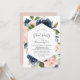 Den här inbjudan till den och marina vita studentfesten är perfekt för en blommigt-händelse. Den klassiska och elegant designen har moderna vattenfärgsblommor i marinblått och rosa. Anpassa kortets baksida med hedersgästens och evenemangets namn.