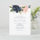 Den moderna marinblått och rosa inbjudningskort för möhippa! Dessa inbjudningar kommer att bli perfekt för en modern möhippa i eleganten! De här inbjudningarna har vattenfärger som målats upp i marin och blommigt med accenter från guld.