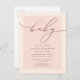 Trendig, babyduschinbjudningar med faux ro-skript på ett överlägg av rosa med elegant, minimalistisk typografi. Denna pastel inbjudan är perfekt för vår babydusch firande.