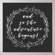NewParkLane - Poster, med inspirationcitatet "Och så äventyr börjar", i en handskriven elegant, typografi i ett andetag, mot en grått-bakgrund i ett kritdiagram. Checka ut samlingen för matchande objekt. Har du någon särskild personlig design för önskemål? Kontakta mig gärna.
